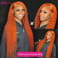 Deep Wave Ginger Orange Lace Front Curly Human Hair Wig Water Wave 13x4 13x6 HD Lace Frontal Wig For Women Brazilian 200 Density